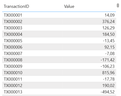 Let's take a look at the following snippet from a 'fact_bank_transactional' table: